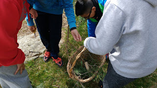 Tras una buena comida: lentejas, tortilla, ensalada y fruta (debían estar hambrientos, muchos han repetido) hemos hecho una excursión por el bosque hasta una colina. ¡Menudas vistas! y un sol estupendo. Durante la excursión hemos recogido hojas, tallos, troncos, flores y frutos. Ahora estamos en un Taller Medioambiental donde los vamos a clasificar. OS DEJAMOS MÁS FOTOS, LUEGO CONTAMOS MÁS.